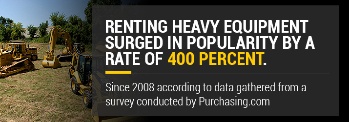 According to data gathered from a survey conducted by Purchasing.com, equipment rental has become a more attractive option for business owners and individuals looking to complete projects. The survey revealed that consumers in this market used multiple options to finance the heavy equipment they needed. Often, they would mix-and-match to find a solution that would fit their situation, such as renting before making a decision to purchase or renting.