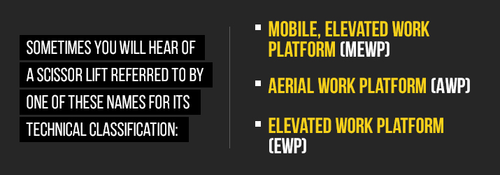 Sometimes you will hear of a scissor lift referred to by one of these names for its technical classification:
